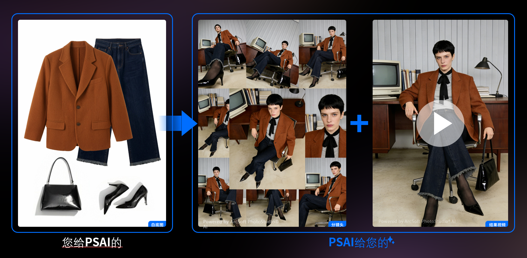 围绕电商视觉内容生产的全流程,虹软PSAI构建了一套完整的AI生成能力体系,全方位覆盖品牌的各类视觉需求。从AI试衣与AI模特生成,无需真人模特就能生成多风格、多人群、多体型的穿搭效果,彻底解决模特难找、成本高昂的问题;到智能换背景功能,一键切换电商白底、场景化空间、品牌专属视觉场景,省去后期抠图的繁琐步骤;再到AI制片与视频生成,将单张图片延展为动态视频,适配短视频、直播切片、商场宣传片等当下热门的内容营销场景,满足品牌多维度的传播需求。