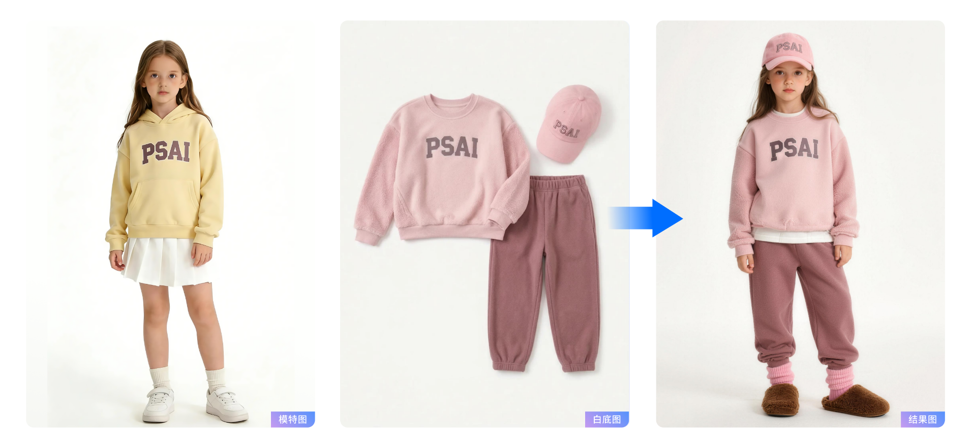 针对不同服装品类的独特痛点,虹软PSAI还打造了专属的成片交付解决方案,让AI商拍的价值得到更精准的发挥。对于童装行业而言,儿童模特难配合、拍摄周期不可控、监护与沟通成本高一直是行业顽疾,虹软PSAI通过AI模特定制、AI模拍换装、AI模拍换鞋等服务,无需真人模特参与,就能生成符合品牌调性的童装成片,不仅让出图成本降低约80%,更节省了约90%的模特相关成本,彻底破解了童装商拍的核心难题,让童装视觉生产进入标准化、规模化阶段。
