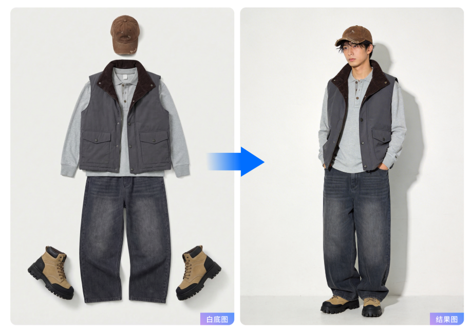 而对于男装与商务品牌,面料质感、版型结构与整体气质是影响商品转化的关键,传统拍摄与精修流程复杂、成本高且周期长,虹软PSAI通过高精度图像增强与生成能力,在保证真实还原面料与版型的前提下,显著提升视觉表现力,让面料质感还原度提升约80%,整体视觉品质提升约70%,让AI不再只是提升效率的工具,更成为放大品牌质感、打造差异化优势的“品质放大器”。