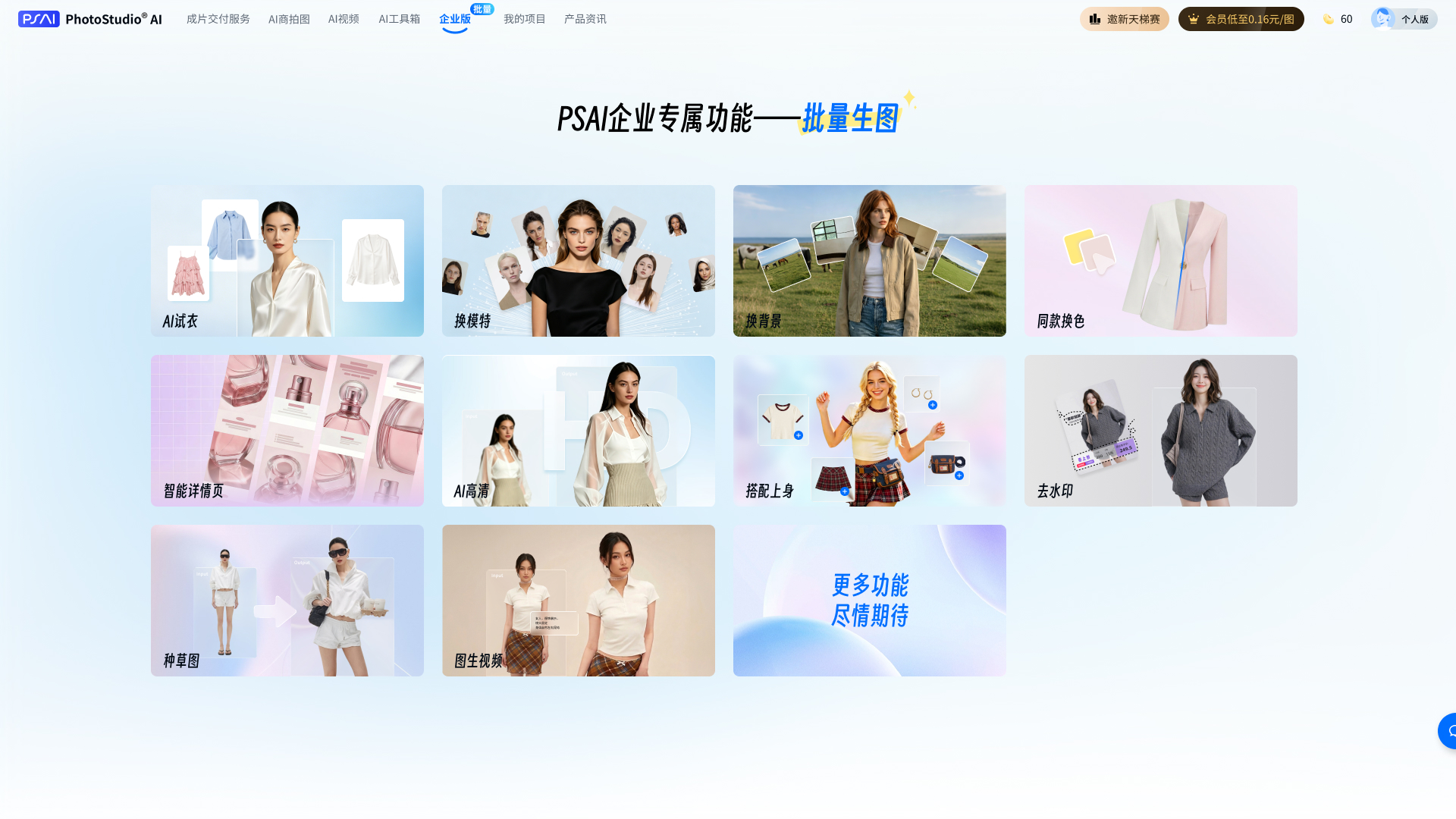 如果你的企业已经在使用PSAI企业版,建议尽快体验种草图和图生视频功能,将现有的商拍工作流进一步延伸;如果你希望了解成片交付服务如何帮助团队节省人力成本,欢迎联系客服,我们将安排专人对接需求并协助你完成首次交付体验。