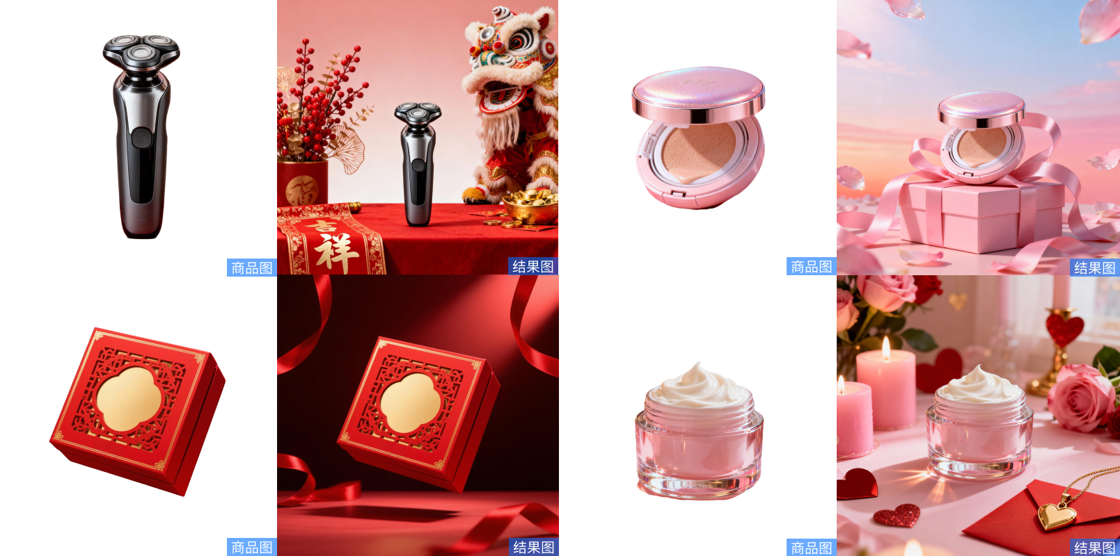 新春氛围、情人节...不用搭景、不用外拍,背景直接 AI 生成。